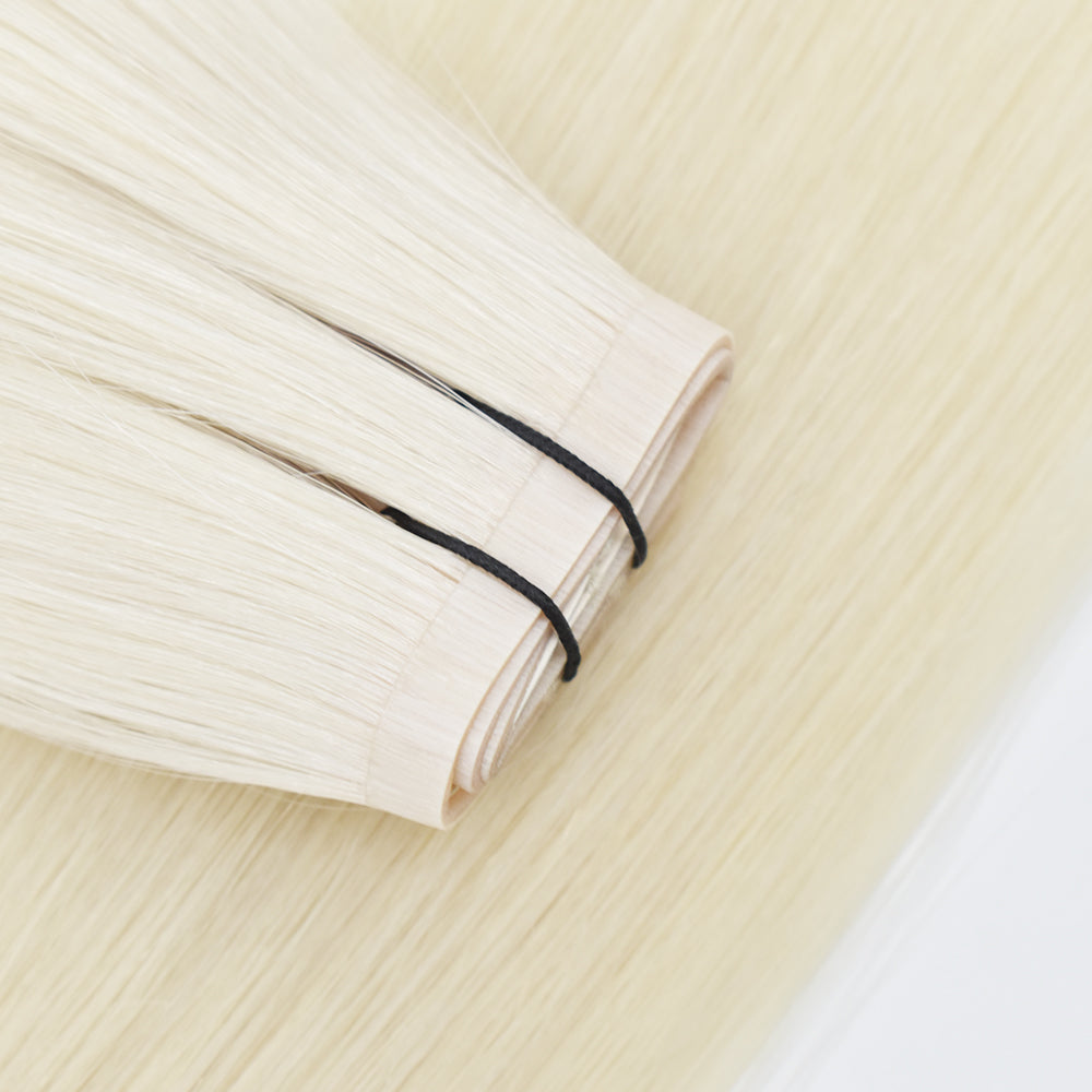 Mit unseren ultrafeinen Feather Wefts kannst du deine Frisur ganz einfach verlängern und verdichten. Sie sind so zart und flexibel das sie fast unsichtbar in dein Eigenhaar eingearbeitet werden können, die beste Methode hier, ist das anbringen mit Nanoringen. Für eine komplette Verlängerung benötigst du in der Regel 2 wefts zum verdichten reicht eine- (möglich ist für eine gesamte Verlängerung auch eine, es kommt ganz auf deine eigene Haardichte an).Die Wefts sind handgefertigt und Double drawn- also voll bis in die Spitzen, 29cm lang und wirklich Ultra dünn. In jeder Farbe erhältlich. Unsere hochwertigen Haarverlängerungen sind aus 100% echtem Haar gefertigt und garantieren dir eine elegante und natürliche Optik.